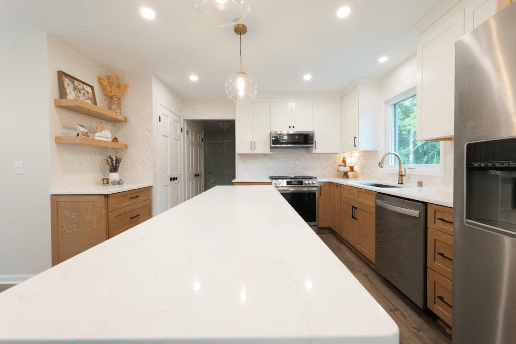 GMH Construction’s team also handled unexpected repairs—such as addressing hidden water damage from a leaking refrigerator—without disrupting the schedule or budget. By keeping what worked and enhancing what didn’t, this remodel delivered everything the homeowners wanted: a bright, cohesive kitchen that ties perfectly into the rest of their home.